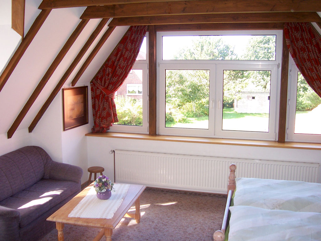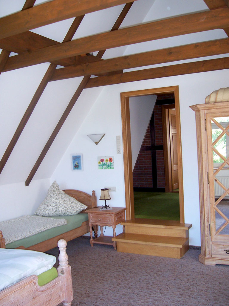 In der ersten Etage finden Sie in zwei Doppel- und einem Mehrbettschlafzimmer